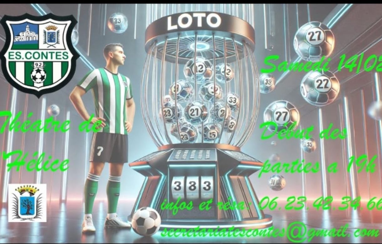 Samedi 14 février 2026, à 19h, l'ES Contes organise un loto au théâtre de l'Hélice. Informations et réservation au 06 23 42 34