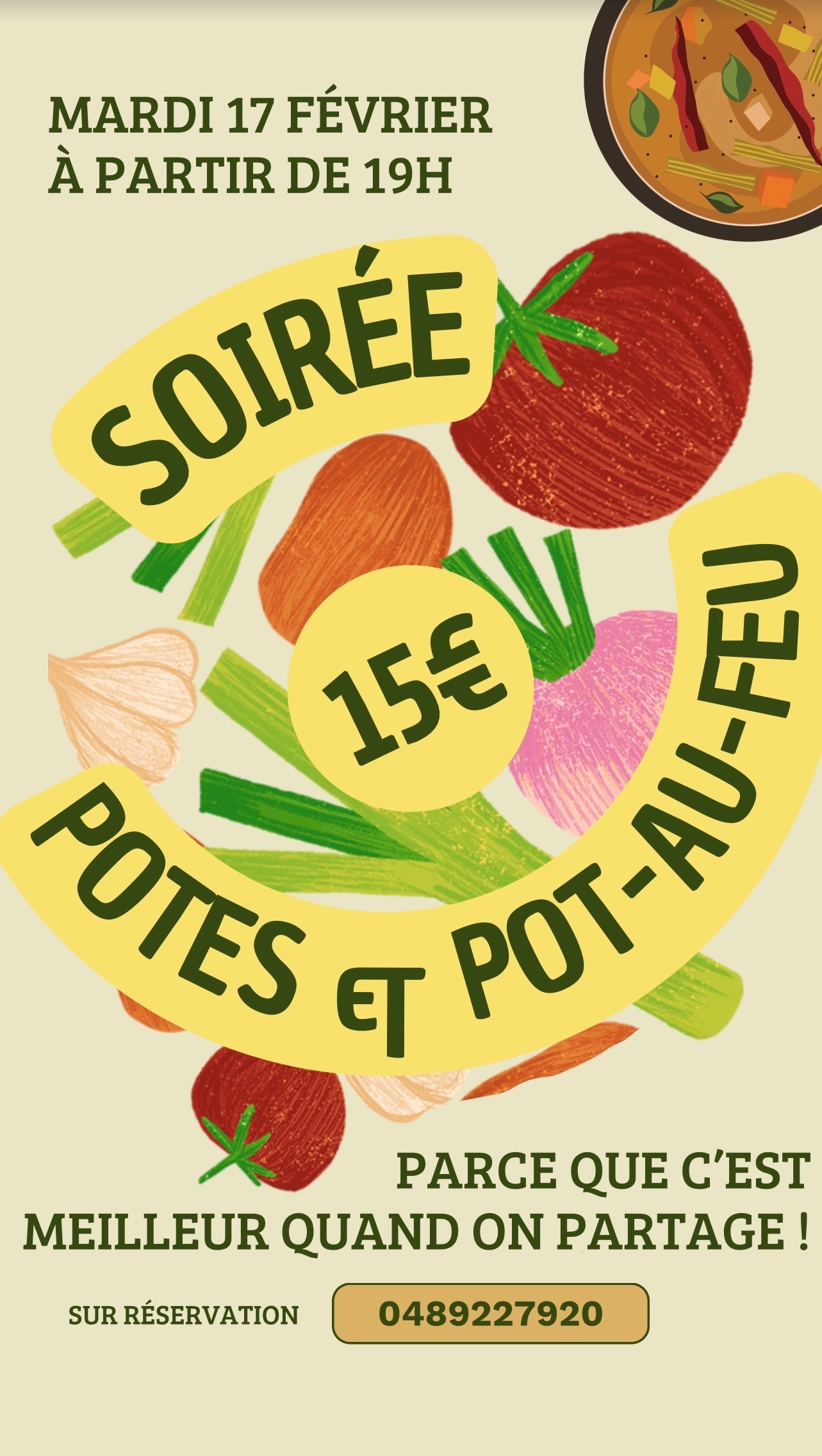Mardi 17 février 2026, à partir de 19h,au restaurant Ch'ti Castel venez participer à la soirée "Potes et Pot-au-feu". Réservation au 04 89 22 79 20