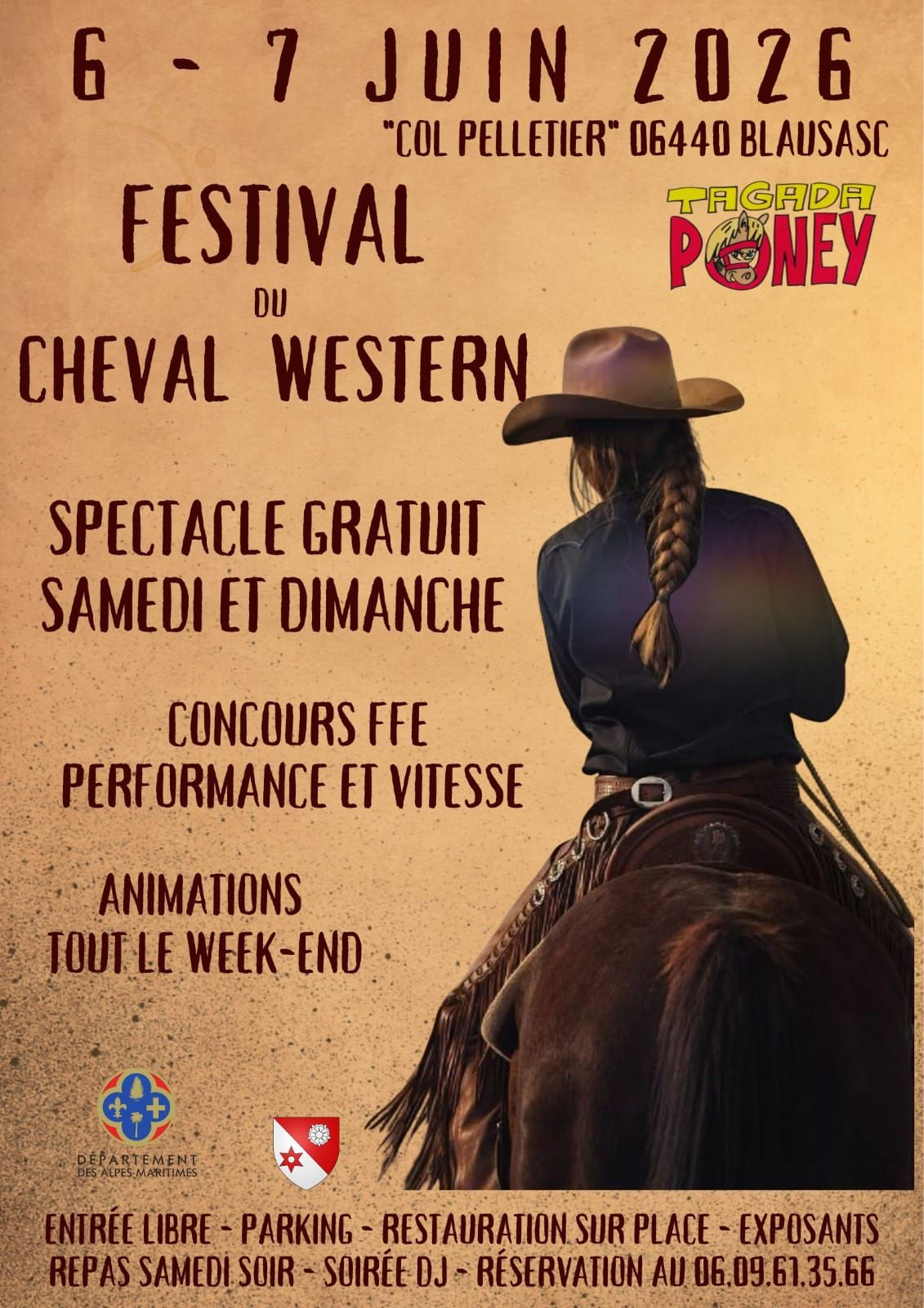 Samedi 6 et dimanche 7 juin 2026, au col pelletier, à partir de 8h, aura lieu le 2eme Festival de cheval Western. Au programme: Concours d'équitation
