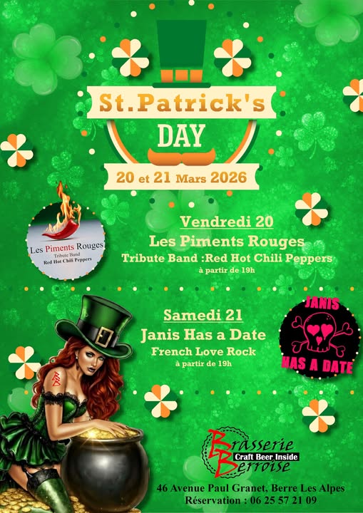 Le vendredi 20 et samedi 21 mars 2026 , a 19h, à la brasserie Berroise, aura lieu la Saint Patrick's day. Au programme: Vendredi