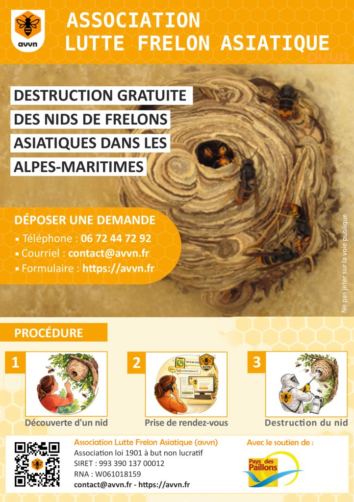 La Communauté de Communes du Pays des Paillons réitère son engagement en signant un partenariat avec l’Association de Lutte contre le Frelon Asiatique (AVVN) afin de permettre à tous les habitants du Pays des Paillons de bénéficier gratuitement de la destruction des nids.