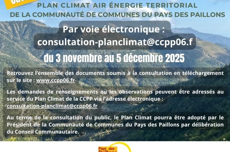Les demandes de renseignements, observations ou questions peuvent être adressées au service du Plan Climat : consulation-planclimat@ccpp06.fr
