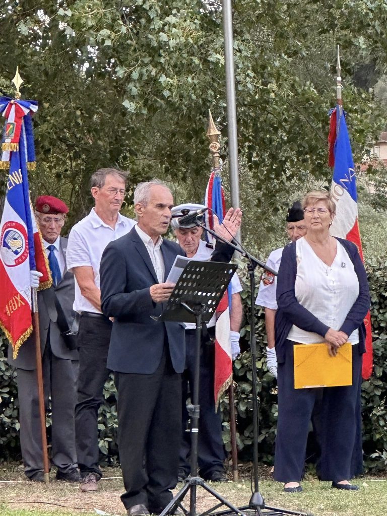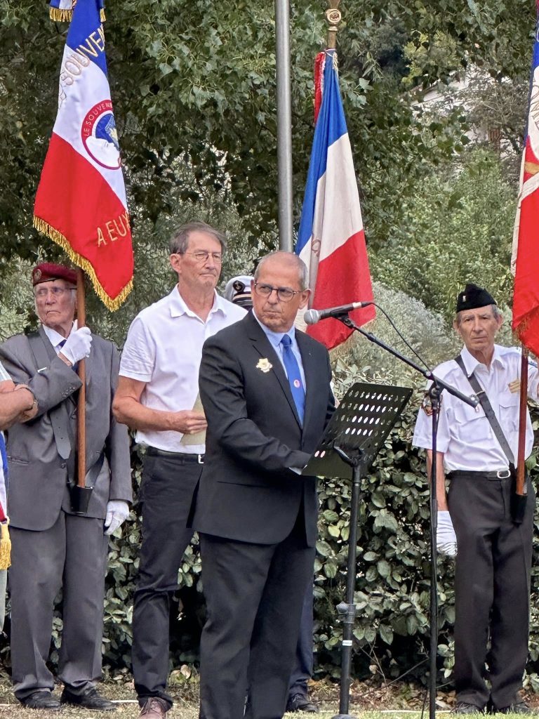 Enfin, Noël André, historien et membre des Amis de la Résistance, a évoqué l’engagement local, citant notamment le groupe Surcouf dirigé par « Émilie », figure emblématique du courage féminin ainsi que le groupe FTP-MOI implanté sur la commune de Peille. Rappelant ainsi que » ce que nous commémorons ici, c’est l’engagement d’une poignée d’hommes et de femmes, leur attachement à la liberté, leur refus de l’Occupation, de l’humiliation, de la soumission « .