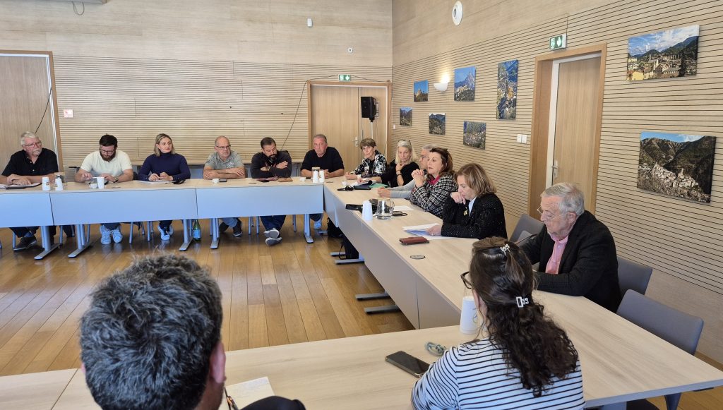 Le 4 novembre, élus, services de l’État et partenaires se sont réunis au siège de la CCPP autour de la Sous-Préfète Nice-Montagne, Laura Reynaud, et du Président de la COMMUNAUTE DE COMMUNES DU PAYS DES PAILLONS, Cyril Piazza, pour découvrir le Plan Intercommunal de Sauvegarde (PICS) du Pays des Paillons, élaboré par la CCPP en collaboration avec les communes des Paillons, le SMIAGE Maralpin et PREDICT Services.